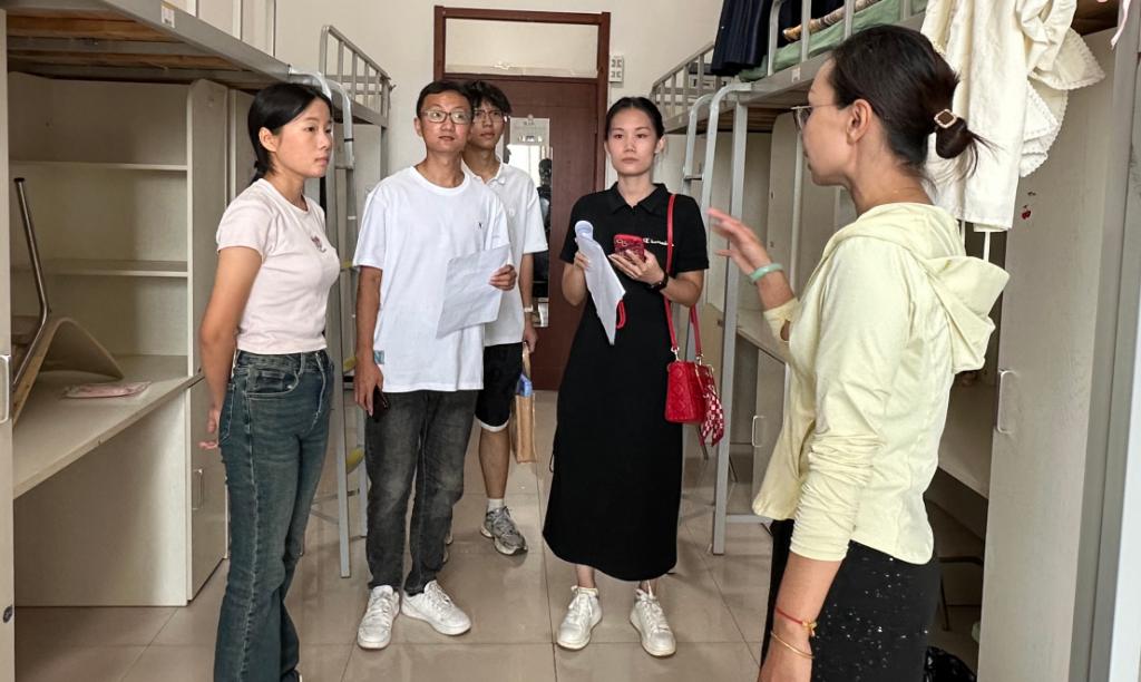 活动现场,迎新志愿者活跃在各自的岗位上,为艺术与设计学院的新生们提供无微不至的服务。展台签到互动、新生引导、物资领取、行李搬运、宿舍布置、摄影采访等一项项工作有条不紊地进行,让每位初来乍到的萌新都感受到来自学院的温暖与亲切。辅导员与志愿者共同收集报到材料,核对录取信息,并耐心解答新生及家长提出的各类问题。校党委书记刘翠荣,校党委副书记、校长任有利成及校党委委员、副校长杨正民等院领导前往迎新报到点代表学校领导班子向入学新生们表示欢迎,向迎新一线的工作人员和学生志愿者表示慰问。迎新结束后,党支部临时负责人燕老师与新生辅导员路老师,李老师前往新生宿舍看望新生及家长,了解新生的基本情况,并与大家进行了深入交流,老师鼓励新生规划好大学生活,争取在学业与生活中取得优异成绩。