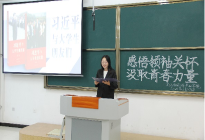 为了重温总书记对青年学生的关心关爱和殷切期待,帮助学生更加深入地理解习近平新时代中国特色社会主义思想的理论逻辑、历史逻辑和实践逻辑,带领青年学生坚定理想信念,做社会主义合格建设者和可靠接班人,文化与旅游产业学院于6月17日在南—109教室开展以“感悟领袖关怀 汲取青春力量”为主题的读书分享会,学院学生积极参与此次活动。