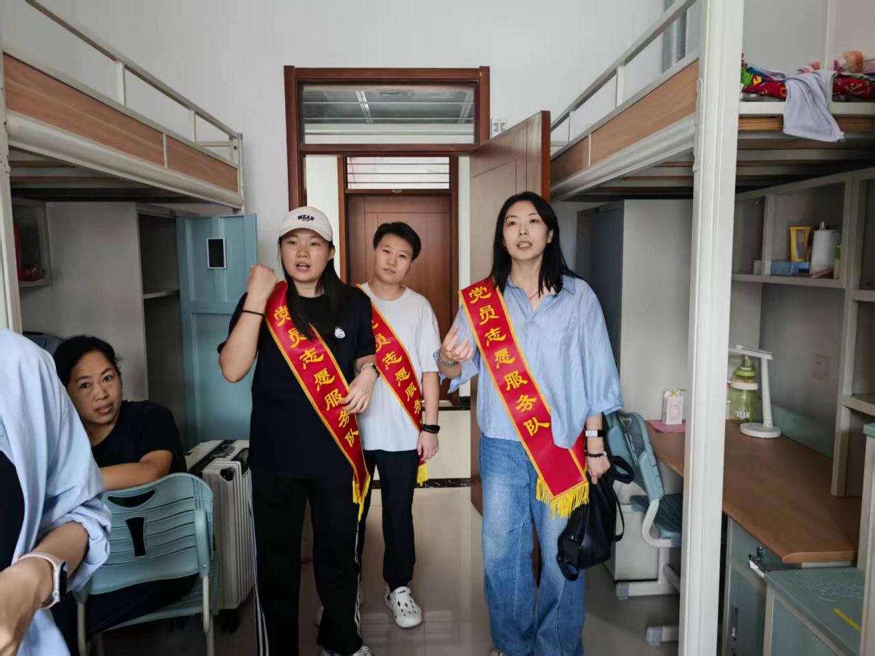 迎新期间,“党员先锋服务队”成员提前明确分工、定岗定责,分别在报道现场、南北区男生、女生宿舍展开迎新志愿服务活动。迎新现场,师生党员带头示范,带领青年学生志愿者分工协作,引导新生完成报到登记、宿舍指引等工作,用热情减缓新生初入校园的陌生感;宿舍楼下,师生党员牵头落实细节,主动接过新生的行李,帮助他们仔细核对信息,讲解宿舍安全注意事项,耐心解答新生对住宿生活的相关疑问。